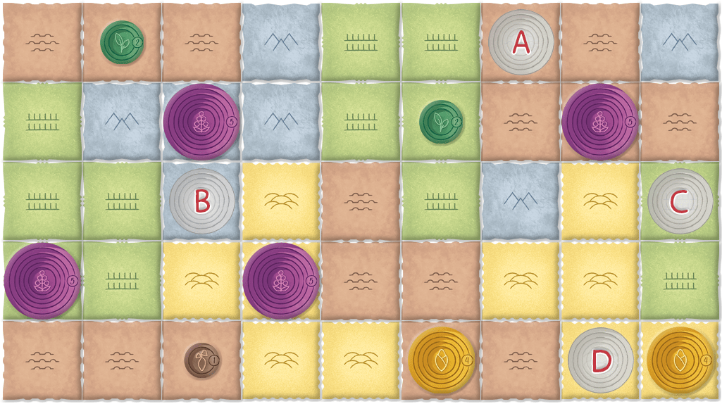 A = 1 / B = 5 / C = 1 / D = 2